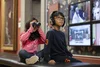 A photograph of an event for Art Fund at Manchester Art gallery, Manchester in which a young girl watches a video presentation while wearing headphones