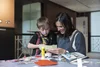 A photograph of an event for Art Fund at Manchester Museum in which a woman and her son make art from craft materials