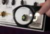 A photograph of an event for Art Fund at Manchester Art gallery, Manchester of an exhibit of a beetle is viewed through the lens of a magnifying glass