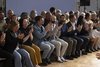 Front-row audience applauding during a fashion catwalk show at Manchester Metropolitan University.