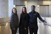Two students and a lecturer posing for a group portrait at Manchester Metropolitan University.