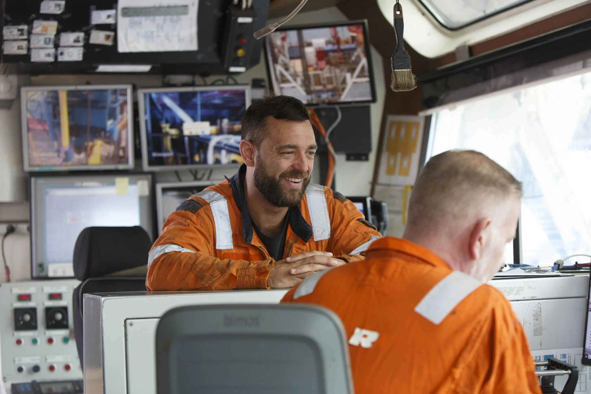 The work included time spent on board a marine survey vessel operating offshore, documenting the early-stage assessment of seabed conditions for future wind turbine installation, alongside public consultation activity connected to the wind farm development. Further photography was produced on land, capturing the transformation of a former industrial steelworks site into a major new energy project focused on hydrogen production.